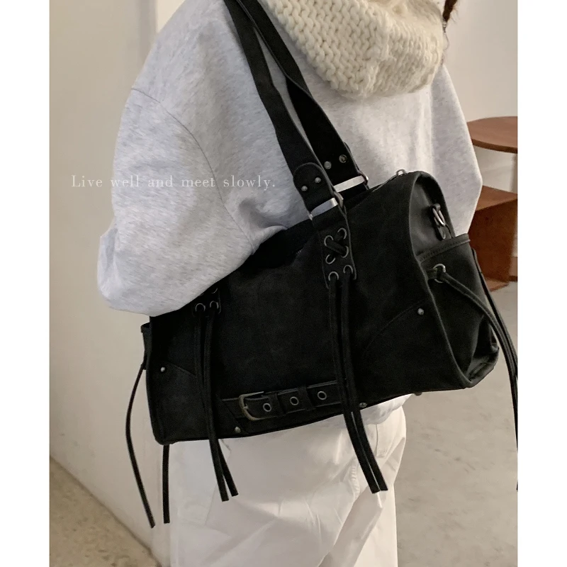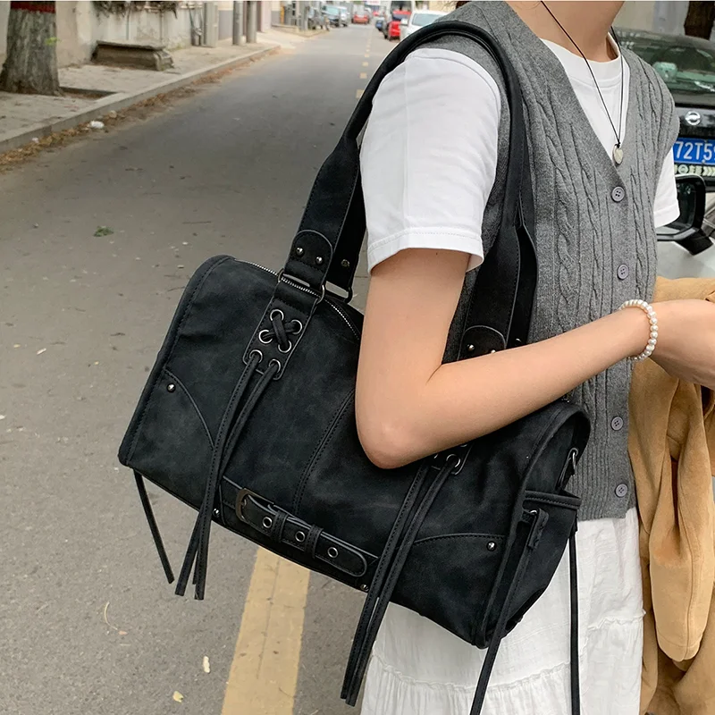 Retro Tassel Shoulder Pillow Bag – Large Capacity